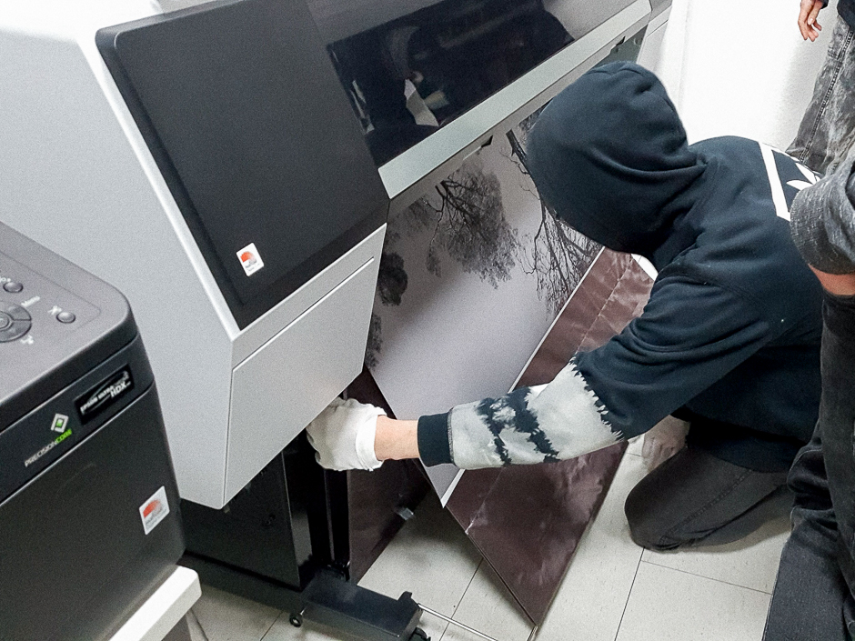 The Printer Room is equipped with three high class Epson printers with which students can produce fine art pigment prints on matt, lustre or glossy paper on sheets up to A0 (941mm x 1189mm) or on rolls up to 112 centimetres (44 inches) wide and 30 metres long. The printers are run on a cost covering basis to encourage students to learn how get the best results from their images and attain museum grade standards for their exhibition prints and portfolios.